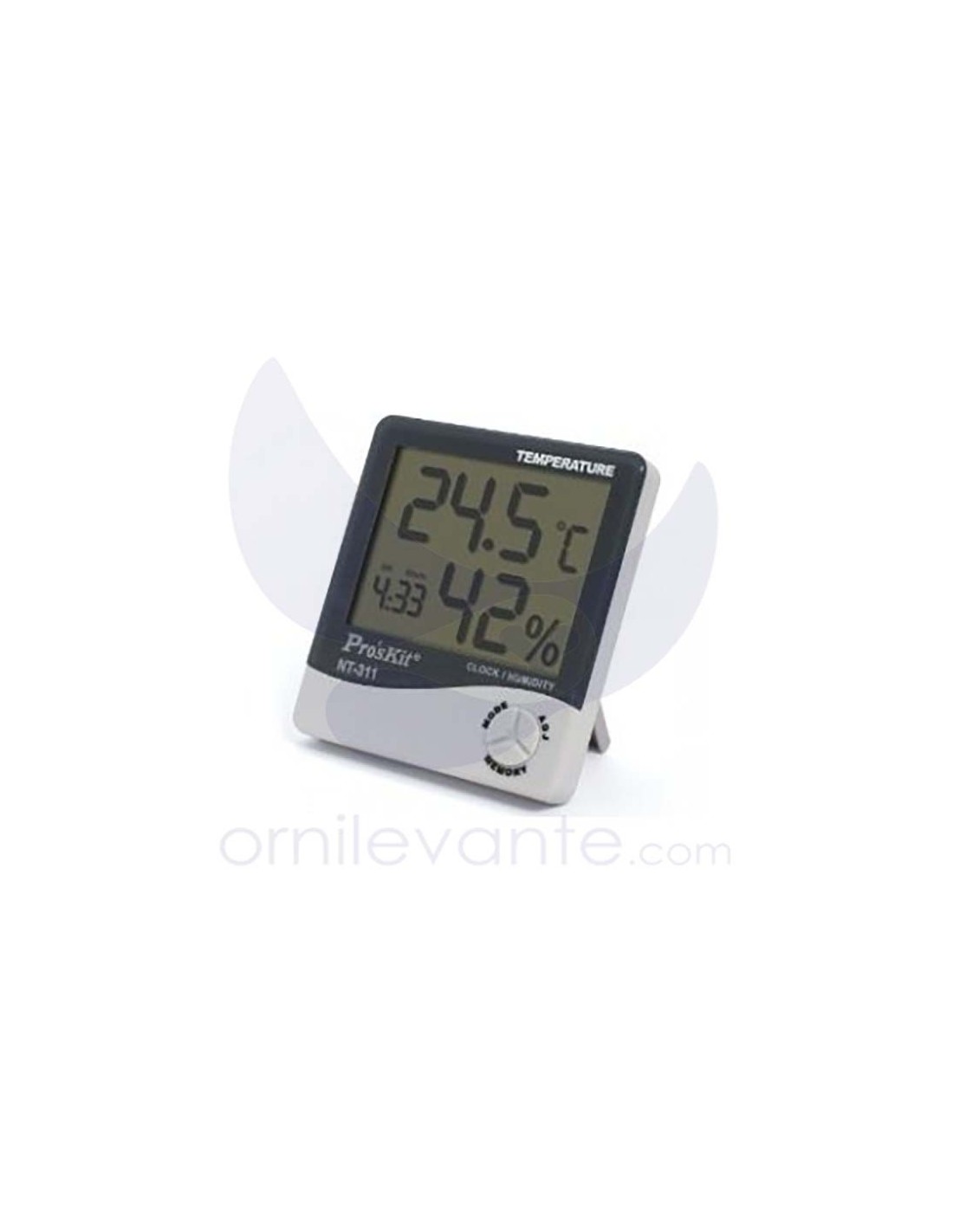 Funciones: Temperatura y humedad; Resolución: Temperatura :0.1ºC y Humedad 1%; Tamaño: 100x108x20mm; Precisión: De 0ºC~50ºC 1ºC, fuera de rango 2ºC y 8%Hr (40%Hr~80%Hr)