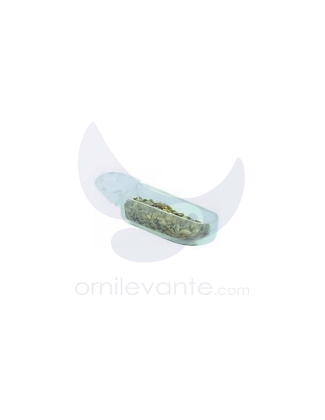 Semillero facil de colocar entre los barrotes de las jaulas ideal para semillas , pastas y suplementos. Fabricado de