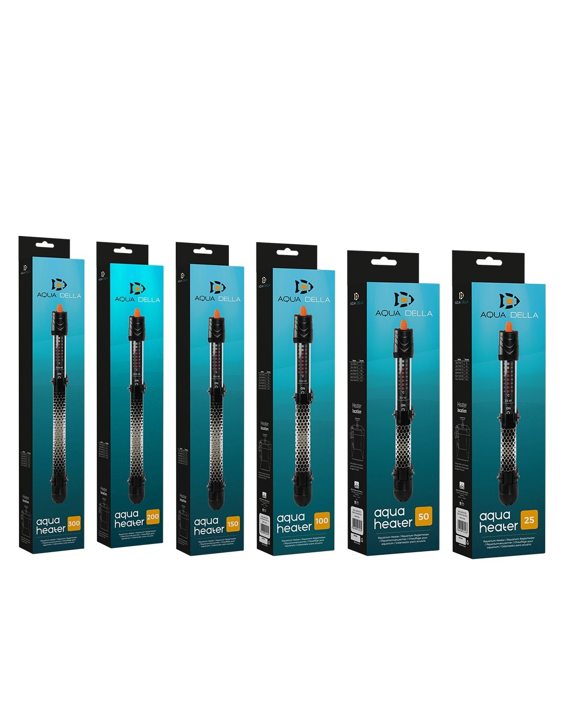 Calentador totalmente sumergible para acuarios de agua dulce y salada. Fácil de usar gracias al control de temperatura claramente ajustable Rango de temperatura entre 20°c y 34°c, con una precisión de 1°. Diseño compacto y sólido La luz indicadora muestra cuando el calentador está funcionando.